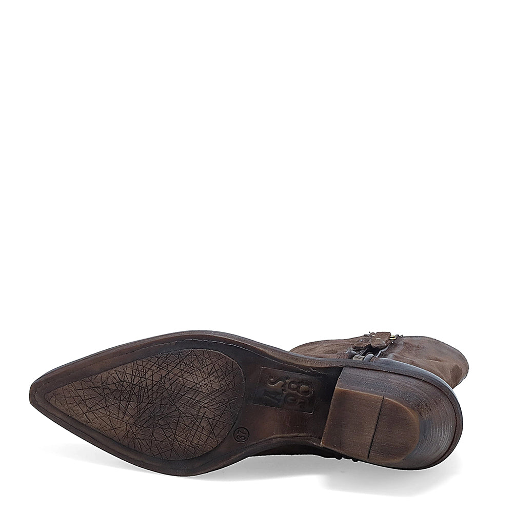 Clint is a women's leather suede western boot from A.S 98. Made in Bosnia, in premium leather. This boot is leather-lined with a leather footbed and has two side zipper fastenings. Clint has a 6⅝ inch shaft and the leather sole stands tall on a 2¼ inch heel with a durable anti-skid rubber heel tap and outsole. This shoe runs true to size. Please choose the size you normally wear.