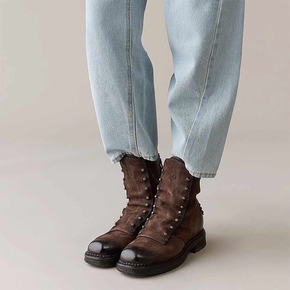 Vilmar is a women's leather suede boot from A.S 98. Made in Bosnia, in premium leather. This boot is leather-lined with a leather footbed and has an asymmetrical zipper fastening. Vilmar has a 6½-inch shaft and the leather sole stands tall on a 1¼-inch heel with a durable anti-skid rubber outsole. This shoe runs true to size. Please choose the size you normally wear.