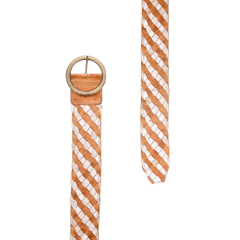 Dreamweaver is a women's leather belt from Bed Stu. Made in Mexico, in premium chrome and formaldehyde-free vegetable-tanned leather. The belt measures 2¼ inches wide.