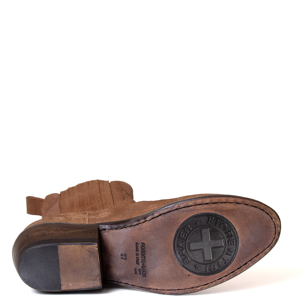 Ruse is a women's suede leather Chelsea boot from Fiorentini+Baker. Made in Italy, in premium leather. This boot is leather lined with a leather footbed and has two elastic side panels. Ruse has a 5¾ inch shaft and the leather sole stands on a 1½ inch heel with a durable anti-skid rubber heeltap. This shoe runs slightly large. If between sizes please choose the smaller size.